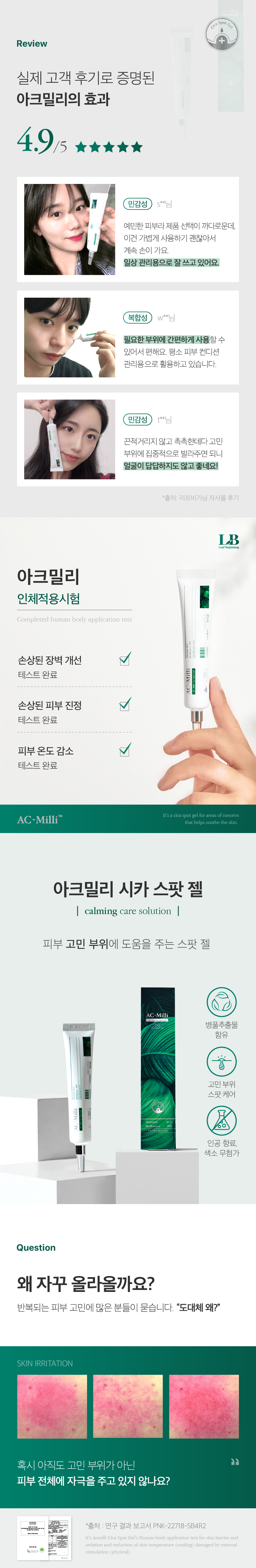 시카 전문 브랜드인 리프비기닝은. 자연의 성분인 병풀추출물(CICA)로 피부 고민 해결을 연구합니다.